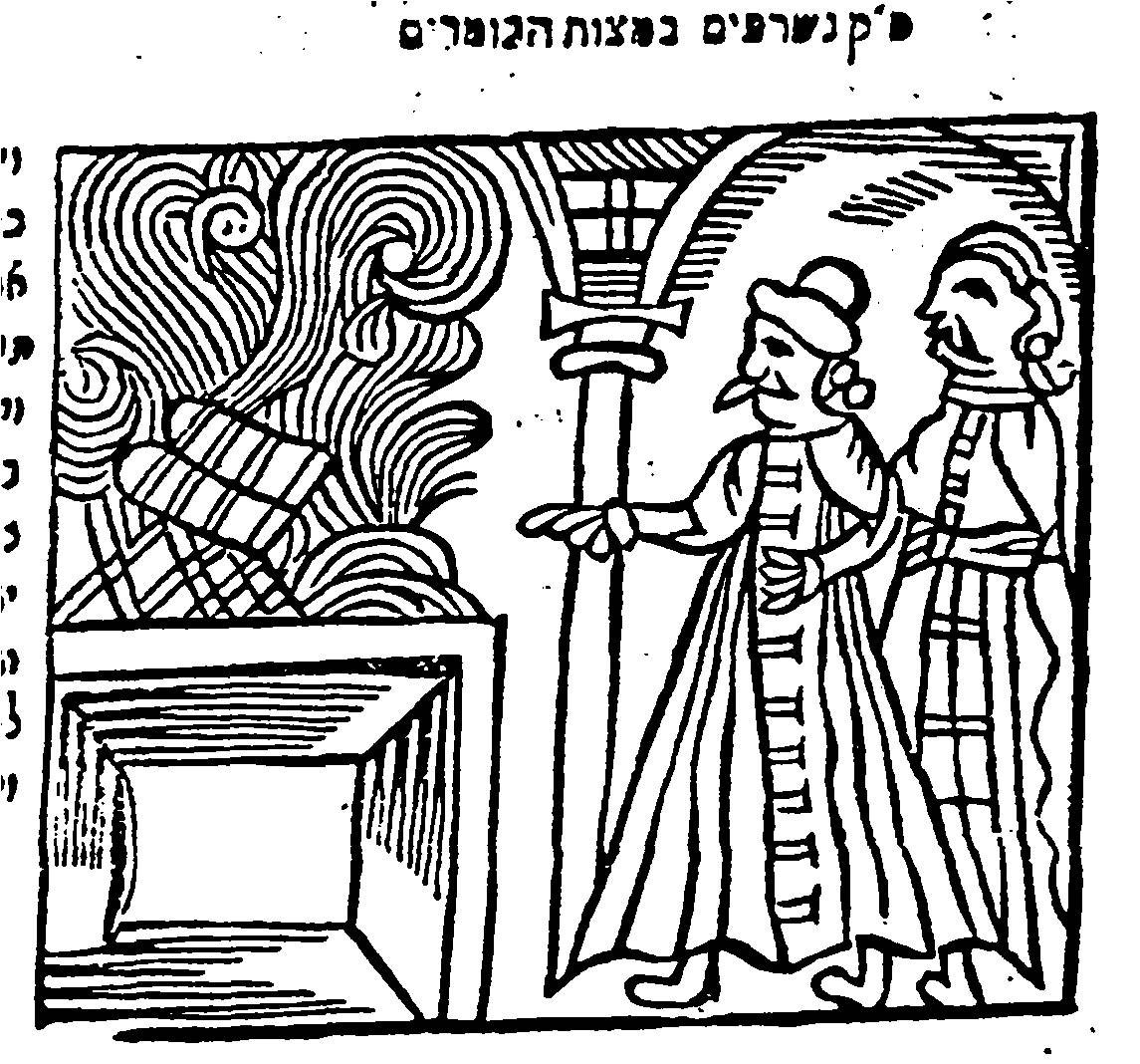 שריפת התלמוד בלבוב. ציור מתוך ספרו הפולמוסי של ר' יעקב עמדן, 'ספר שמוש', אמסטרדם תקי"ח