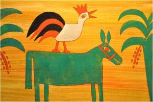 אוצרות הגלריה "חלל 10" בחרו להתמקד בציורים ובאובייקטים פיסוליים גדושים מעולם החי. בעבודותיו, עולם החיות הקסום שאליהו סידי חי במחיצתו מתלכד עם עולם חיות מיתי המבשר על גאולה. החמור המשיחי נושא על גבו את תרנגול הזהב המיתי ופניהם פונות יחד אל המזרח.