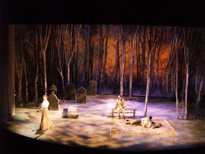 [מישהו דופק על החלון הסמוך לשולחן] מה זה? [מביט בחלון] אין לראות איש [פותח את דלת הזכוכית ומביט אל הגן] מי שם? [מסתלק; נשמע קול צעדיו המהירים במרפסת; לאחר חצי דקה חוזר עם נינה זריצ'ניה] נינה! נינה!