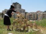 במיצג הווידאו המרשים במיוחד של יעל קרוגליאק, מצולמת אישה צעירה בהריון מתקדם הבונה את ביתה מקרשים אקראיים בשדה פתוח. היא בונה קונסטרוקציה עדינה ושברירית, כמו שילדים בונים מגדל מקוביות, ובשלב מסוים הקונסטרוציה מתפרקת והיא שבה לבנות אותה מחדש. ברקע השדה הפתוח מופיע נוף אורבני עם בתים מרובי קומות. הבניינים הגבוהים והמונומנטליים עומדים בניגוד גמור לשדה הפתוח ולמבנה השברירי הנופל וקם. החוויה שיעל קרוגליאק מעבירה היא שבית הוא לא אותו מבנה מקובע הנראה לעין אלא מהות דינאמית מתפרקת, נבנית ומשתנה כל הזמן. "אני מרגישה שזה באמת כך. להגיע לבית זה לא כל כך פשוט. גם להגיע לבית פיזית, וגם לבית במובן של משפחה – זאת עבודה סיזיפית; להתעסק בקטנות, יש נפילות, אחר כך קמים וממשיכים הלאה. לבנות בית בכל המובנים שלו זה לא משהו שעושים בפעם אחת אלא ישנו תהליך דינמי ותמידי של שינוי: נמצאים כל הזמן בבנייה. הבנייה היא המהות של הבית, בעצם היא הבית".