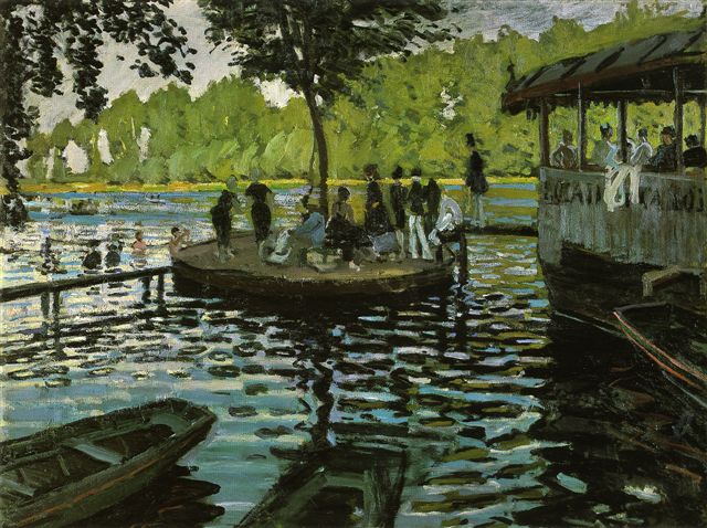 לה גרנוייר, 1869. שעות אחרי צהרים של קיץ הן השעות האהובות עליו ביממה. צבע השמים הבהיר מתכהה ומתאדם ונאבק באור השמש, ופלטת הצבעים השמימית נפרשת במלוא גווניה ומהתלת בעצים המשתקפים בנהר הסן.