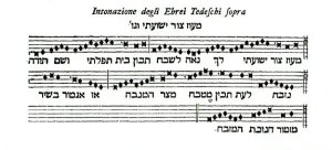 תווי המזמור מעוז צור כפי שהושר בבית הכנסת האשכנזי בונציה. מופיע בתוך אחת ה-Parafrasi Poetici, קנטטות איטלקיות מתחילת המאה ה-18