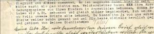 אילזה שלי היקרה! אתמול קיבלנו את מכתבך החביב … אנחנו בריאים, שבח לאל. מפריץ היקר אנחנו עכשיו שוב בלי חדשות זה 4 שבועות. הדיווחים השבועיים, שהיו כל כך נעימים, מגיעים לעיתים רחוקות מאוד בגלל קשר הדואר הגרוע. מרתה היקרה שלנו לעמת זאת מפצה אותנו על-ידי המכתבים שלה, לרוב שניים בשבוע. היא מרגישה כל כך טוב בשטקלסדורף. הנהלת המפעל מאוד מרוצה ממנה…