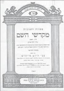 תמונת עמוד השער עם הקדשתו של הרב נמסרה לילדיו, מיכל ומנחם יזרעאל, והיא מעטרת את סוכתם בירושלים.