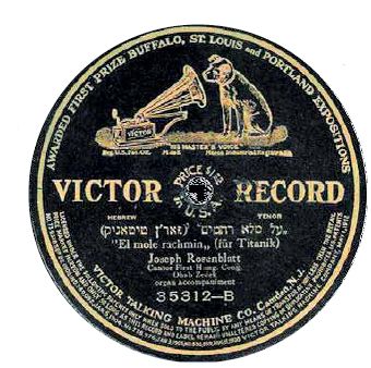 בשנת 1913 הופק תקליט ובו תפילת "א-ל מלא רחמים" לעילוי נשמות הטובעים באסון הטיטאניק בביצועו של החזן הנודע יוסף (יוסל'ה) רוזנבלט (1882-1933). התפילה הוקלטה ב-29 ליולי 1913 בחברת ויקטור תקליטים, והיא אחת מההקלטות המוקדמות שלו בארה"ב. גרסה מיוחדת זו, שנוסחה בידי רוזנבלט, היא עיבוד והתאמה של הנוסח המסורתי של התפילה, ודבר האסון מוצא את ביטויו בגוף התפילה: "א-ל מלא רחמים… במעלות קדושים וטהורים כזוהר הרקיע מזהירים, את נשמות אנשי טיטאניק שנטבעו בים ושהלכו לעולמם. בעבור שאנחנו נודרים צדקה…".