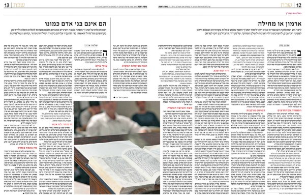 תגובה למאמרים: "ארמון או מחילה" מאת הרב אמנון בזק, ו'הם אינם בני אדם כמונו', הרב שלמה אבינר.