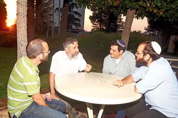 שיחה נינוחה על התלמוד. יעקב מאיר, אלכס טל, הרב דב ברקוביץ' ויואב שורק.
