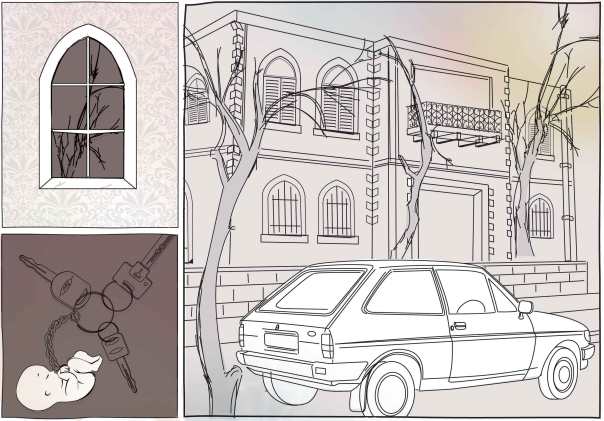 נסעה לדרומה של העיר וסובבה בשכונה של קשי יום, ברחובות ריקים מאדם. עצרה סמוך לבלוק מגורים ארוך ומוזנח במקום שמרפסת נוגעת במרפסת וחלון צופה בחלון, מקום שאיננה מכירה איש ואיש לא מכיר אותה. תשב כאן כמה שתשב, ואם תירדם תירדם, הרי לא באה להתנחם בצרותיהם של אחרים או לקבל פרופורציות על החיים, רק לכלות נתח מזמנו הארוך של הלילה. בחלון מואר בקומה החמישית מבעד לגשם ולאד שכיסה את החלון הייתה דמות שעונה על השמשה, מניעה ידיים ומנהלת שיחה ערה או ויכוח והגשם מטשטש אותה, מתעתע ומעצים את הדרמה. מרותקת אל הסרט האילם שהתרחש מאחורי הזגוגית בקומה החמישית לא השגיחה במישהו שנשען על השמשה הימנית של רכבה ומתבונן בה ולא הפכה פניה עד ששמעה את דלת הרכב נפתחת ונבהלה.