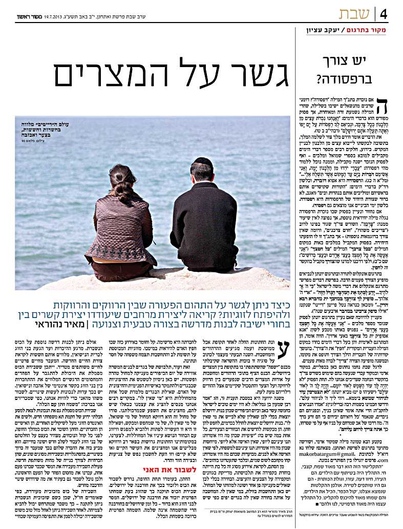 פורסם במוסף 'שבת', 'מקור ראשון', י"ט אב תשע"ג, 26.7.2013