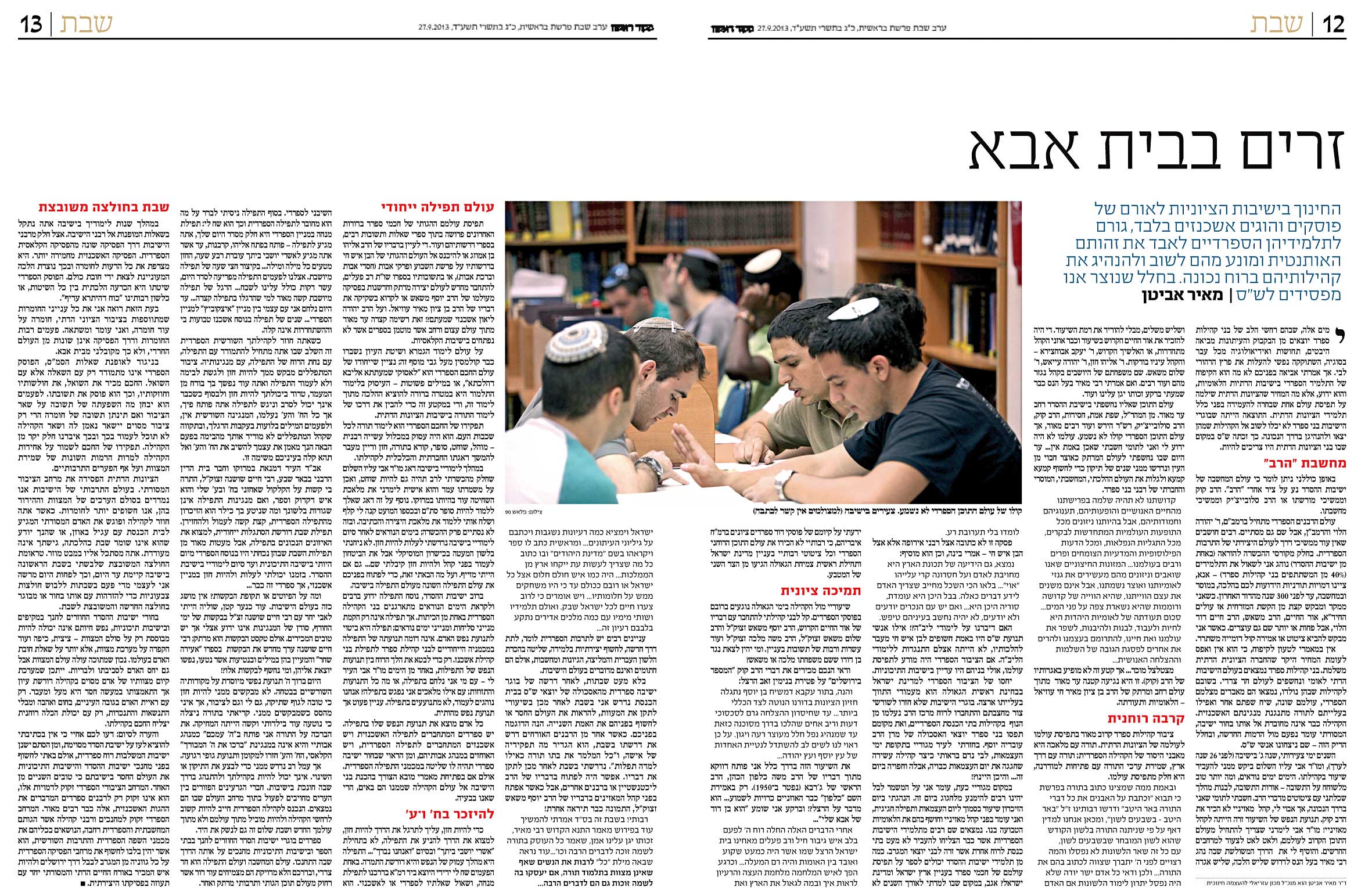פורסם במוסף 'שבת', 'מקור ראשון', ל' תשרי תשע"ד, 04.10.2013