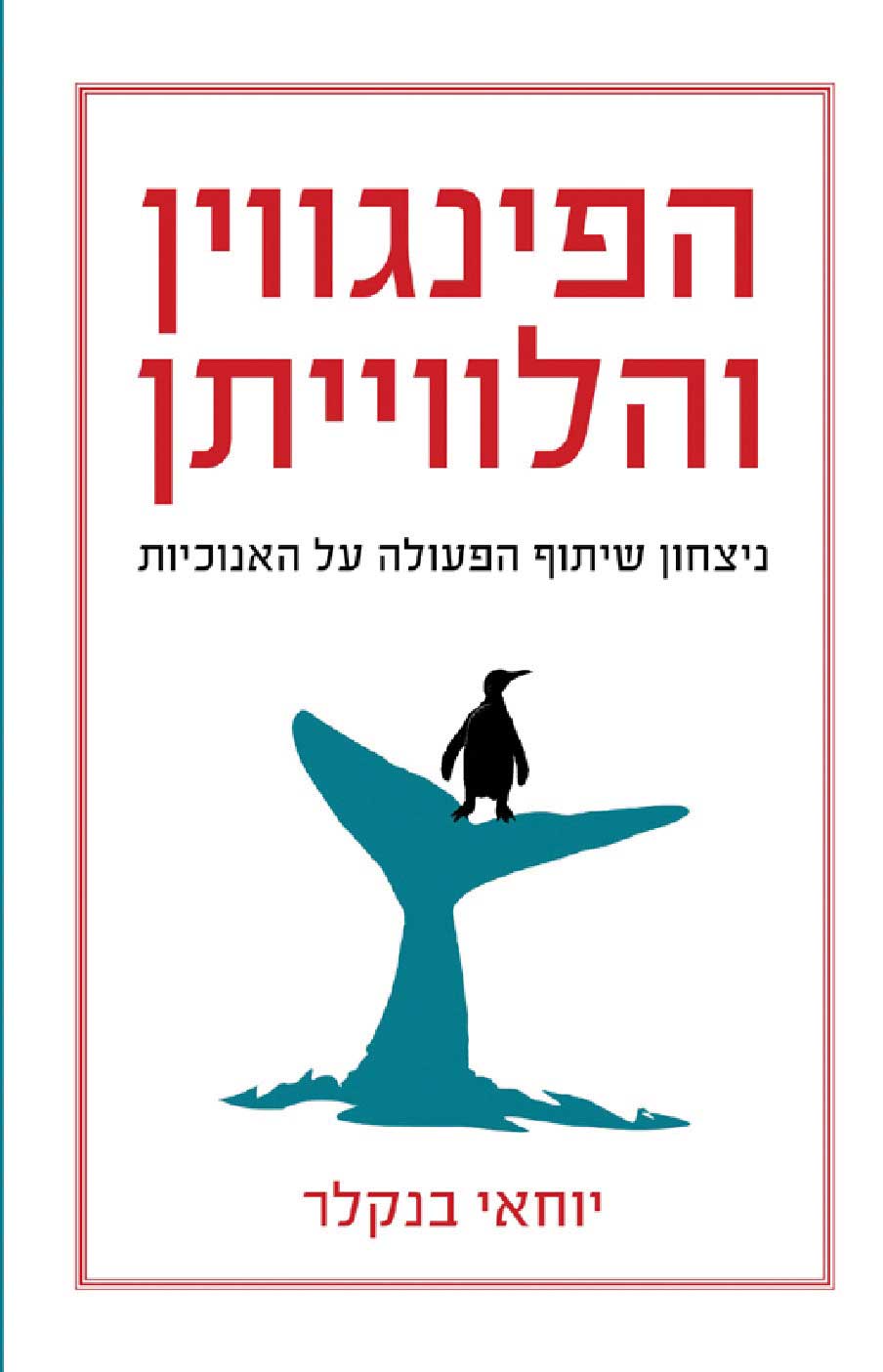 נתחיל בשם הספר וליתר דיוק בפינגווין. מי שראה את סרט הטבע הנפלא על הפינגווינים הקיסריים ("משפחת הקיסרים", לוק ז'אקה, 2005) מתחבר אל רוחו של הספר עוד לפני שקרא בו אפילו מילה אחת. בסרט ההוא נראו הפינגווינים, שבמין הסכמה מופלאה מצטופפים ונדחקים לדבוקה צפופה אחת כדי להתגונן מן הרוחות העזות והשלג המצליף בחורף ולשמור על חום גופם. בד בבד הם גם משנים את מקומם ללא הרף: אלה שבמרכז החם והמוגן של הדבוקה זזים בהדרגה לשוליים וכך מפנים מקום לאלה שהיו קודם במעגל החיצוני ומאפשרים להם להתקרב יותר ויותר למרכז, כדי שיתחממו גם הם ולא יקפאו. דוגמה אולטימטיבית, ציורית וצובטת לב לשיתוף פעולה, לזולתניות לא־מילולית המנצחת את האנוכיות. בנקלר אמנם אינו מזכיר את התנהגות הפינגווינים שבסרט ההוא, אלא לוקח את הפינגווין שלו מלוגו של חברה מסחרית, אבל לזה בדיוק כוונתו.