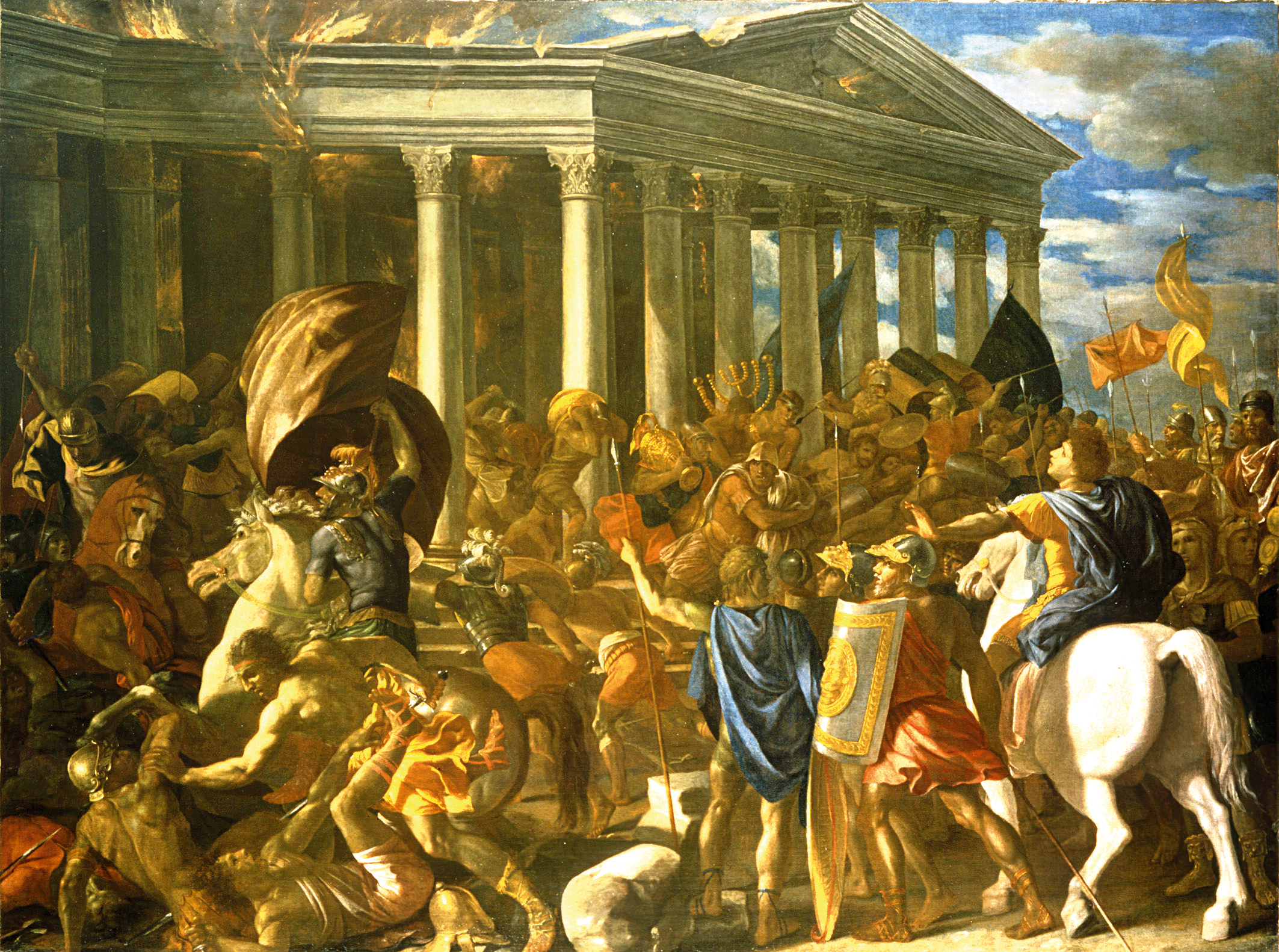 טיטוס של פוסן מנסה לבלום בגופו את חורבן המקדש. ניקולה פוסן, חורבן בית המקדש ובזיזתו, 1626-1625, מוזיאון ישראל