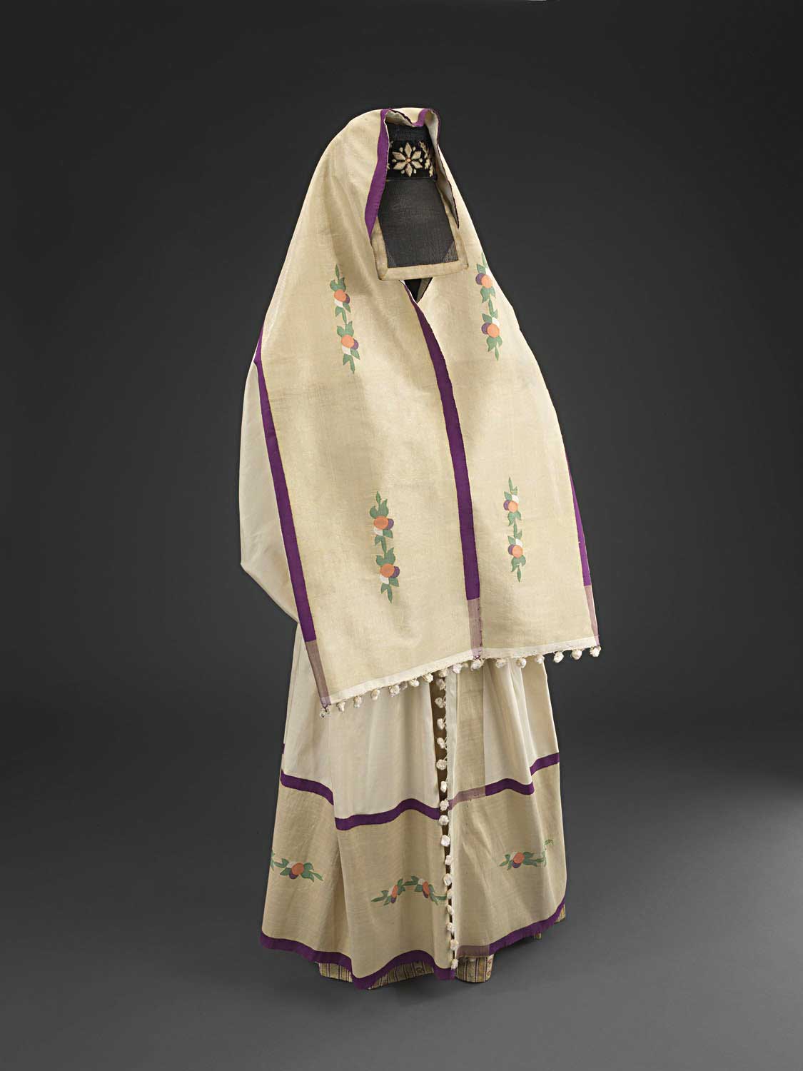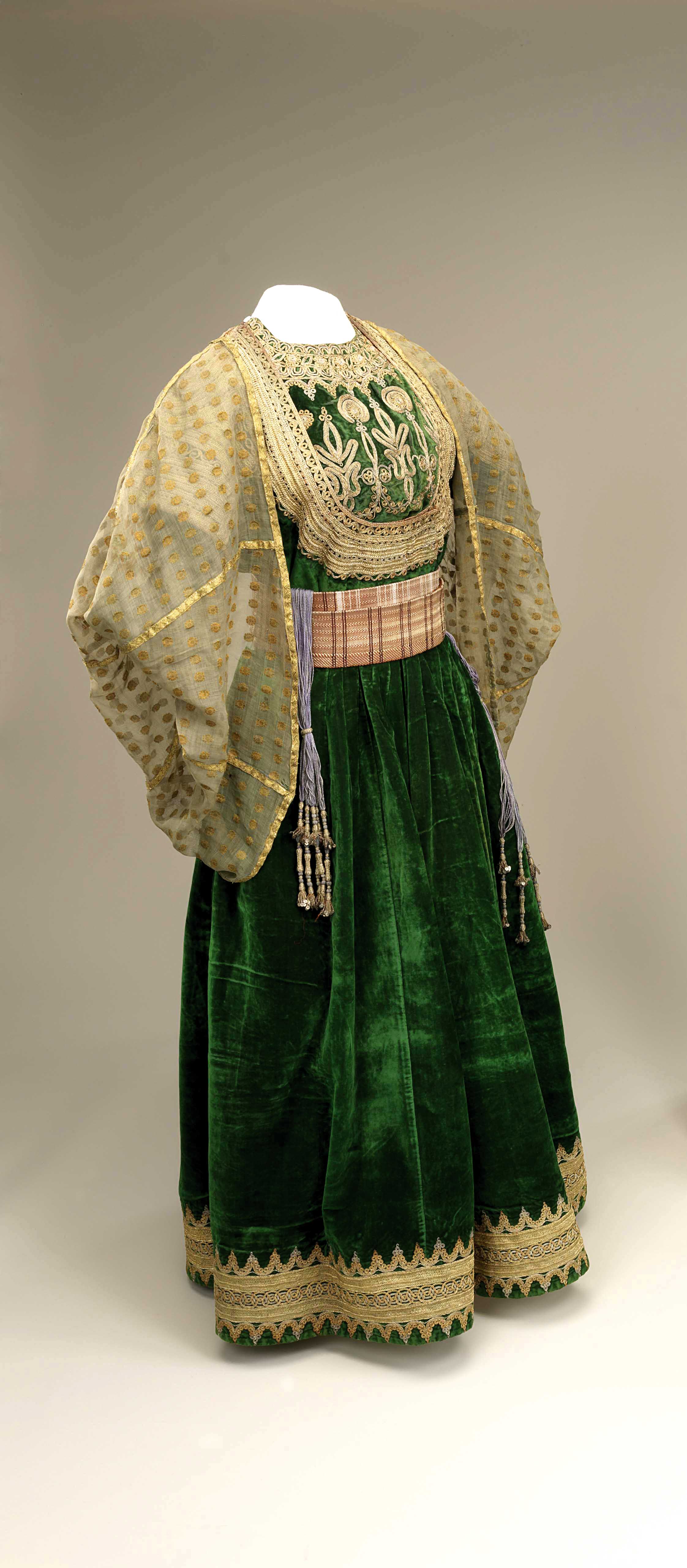 בין המוצגים בתערוכה נמצאת שמלת ה"לולוי" מצנעא של סוף המאה ה־19, העשויה אריג כותנה שבמרכזו רקמה בחוטי מתכת מוזהבים. את השמלה לבשה היולדת בשבת שלאחר הלידה, כשהיא עונדת את תכשיטיה הטובים ומקבלת את אורחיה. לאחר מכן נלבשה השמלה ביום כיפור ובאירועים חגיגיים אחרים, ובסוף חייה – הפכה לתכריכים. פריט נוסף הוא פרוכת בית כנסת מתורכיה הרקומה ברקמת זהב יפהפייה. מבט מקרוב מגלה על הפרוכת סימני חיתוך של גזרת שמלה: הפרוכת הייתה בעבר שמלה של אישה. לאחר מותה פרמו את השמלה ותפרו אותה מחדש כך שתהיה פרוכת. הבגד, שמשמר את זיכרון גוף האישה שלבשה אותו, הופך לאחר מותה לבקשה מן הקהילה לנצור את זכרה ואת זכר קרוביה.