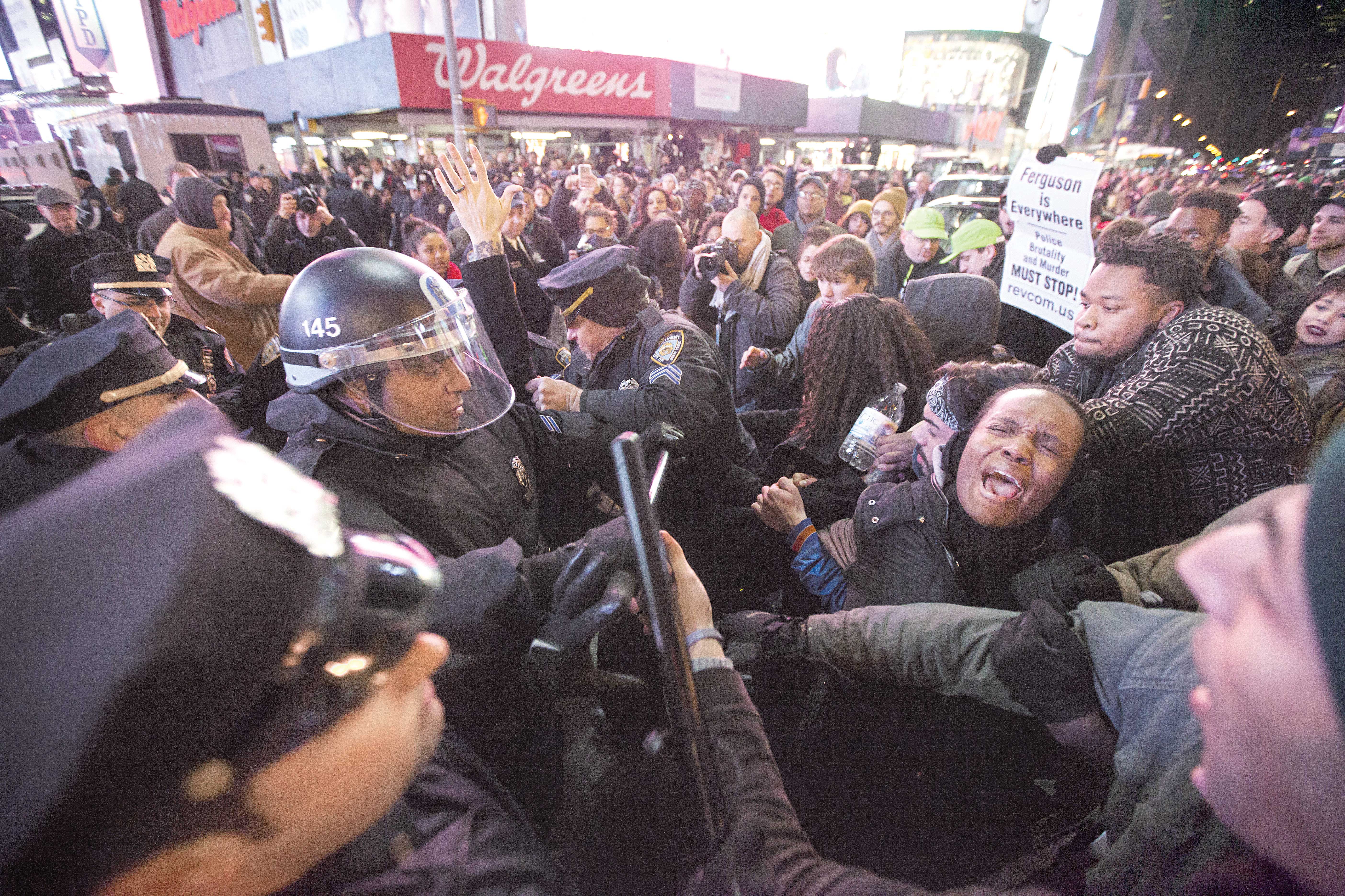 הפגנה נגד החלטת בית המשפט שלא להרשיע את השוטר שהיה מעורב במותו של אריק גרנר, ניו יורק, דצמבר 2014