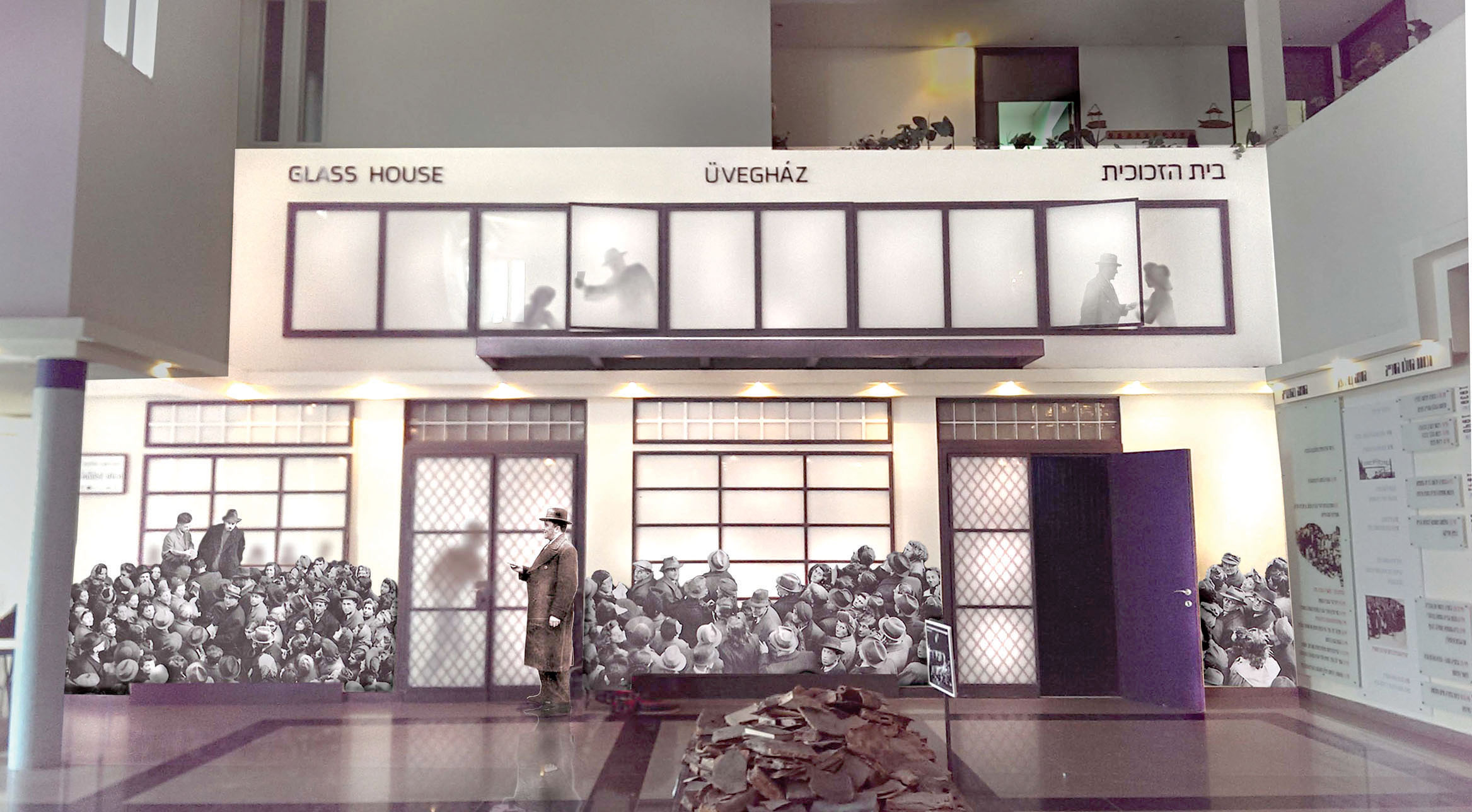 מתקנים עוול היסטורי. חזית בית הזכוכית המשוחזרת ב"בית העדות", ניר גלים. צילום הדמיה