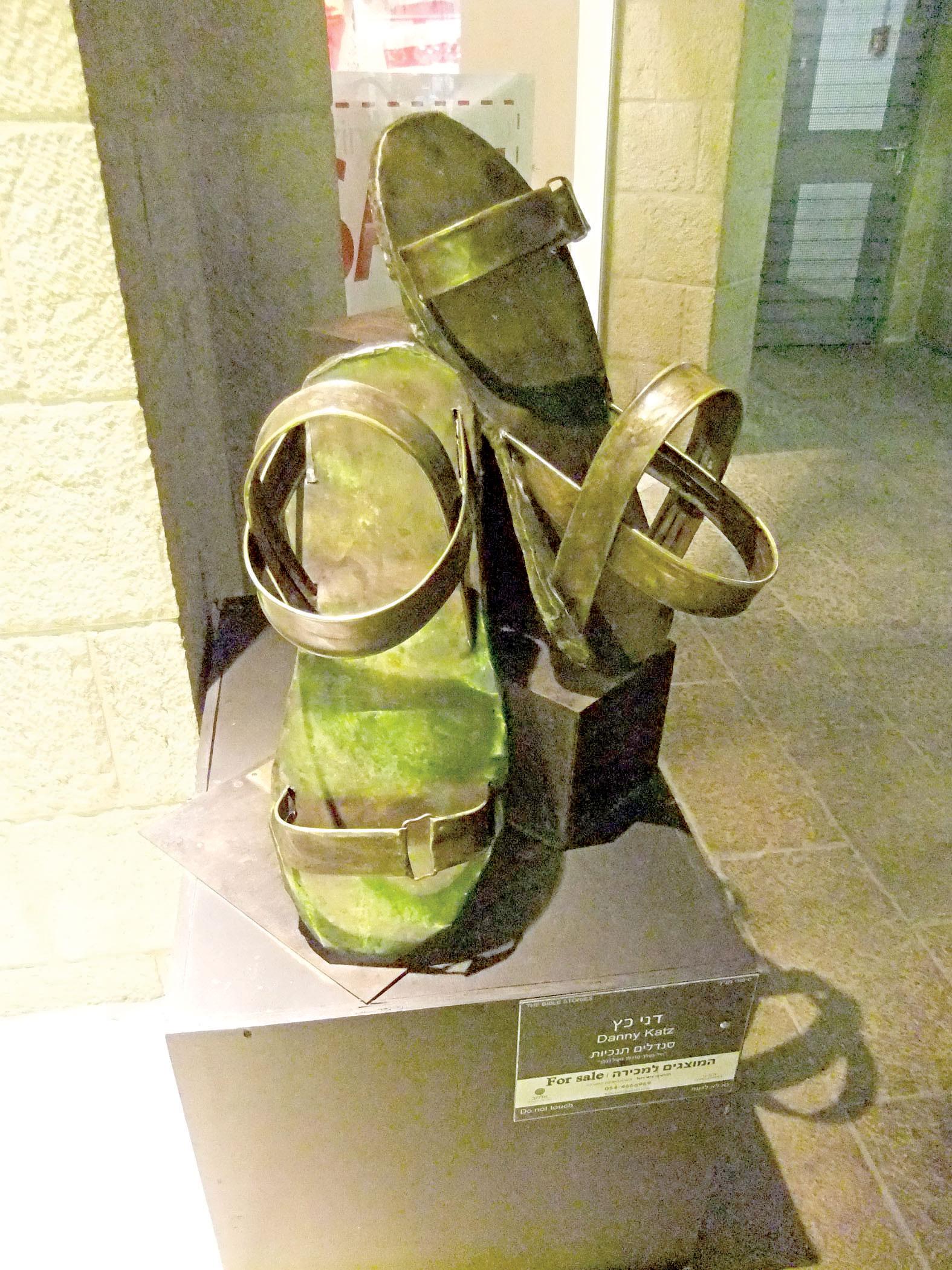 תופסים מקום חשוב אצל אוכלוסיית רגישי-הטמפרטורה-בקצות-הגוף. דגם סנדלים תנ"כיים שהוצג בתערוכה בשדרות ממילא, ירושלים, 2011