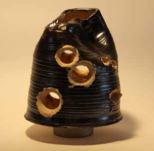 מיה סלומון, הירוי, חרסית וזיגוג מטאלי, 2014. פורת סלומון, בעל פעור, גרפיט על בד, 2015
