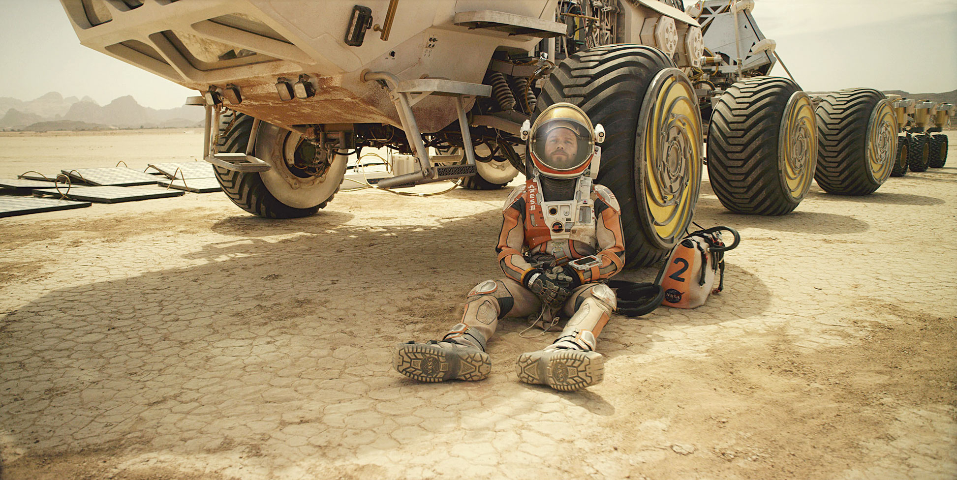 בנקודה אחרת מנסים מהנדסי נאס"א לשכנע את וואטני להפחית משמעותית ממשקל רכב המילוט שבו עליו לנסות להמריא ממאדים, על ידי הסרת שכבות הגנה מרובות, כולל מכסה החרטום, שאותו עליו להחליף ביריעה ששימשה לכיסוי תחנת החלל. וואטני מסרב בטענה שמדובר במעשה מטורף, אולם משתכנע למשמע הטיעון "אתה תהיה הנוסע המהיר ביותר בתולדות המסע לחלל", ומוסיף בעצמו: "ועוד אסע ברכב עם גג נפתח".