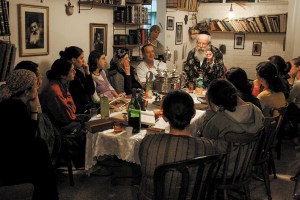 ומאז הייתי בא אליו עם משפחתי לסוכתו בימי החג והיה מתעניין ומלטף כל ילד, מצטרף להדלקת הנרות המשפחתית והממושכת בביתו בימי החנוכה, לטישים בימי הזיכרון של אבותיו ובפורים ולשיחות מפעם לפעם בשעת לילה מאוחרת בחדרו, כשתמונות אבותיו מביטות עלינו וכל ירושלים נפרסת מן החלון.