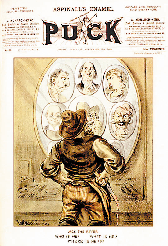 איך בוחר בוב הקצב, בן דמותו המודרני של ג'ק המרטש, את קורבנותיו? ג'ק המרטש בקריקטורה מ–1889