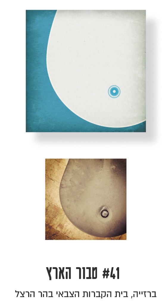 את עין המצלמה של אברמסון תפסה ברזייה בהר הרצל. כאשר התבונן בקטע מן הצילום הוא נראה לו כטבור. לאחר שהפך את התמונה לתיאור בקווים גרפיים נקיים נוצרה צורה חידתית שלה בחר את השם: "טבור הארץ". המשמעות החדשה של "מרכז העולם" היא אפוא מקור מים, מעין נביעה מלאכותית, הנמצא בהר המתים הישראלי, פנתיאון האומה, שבו קבורים מנהיגי המדינה לצד חיילים שמסרו את נפשם בהגנה על ביטחונה.