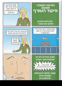 מלבד הפנטזיות המוכרות בסיפורי גיבורי העל בקומיקס, רואים אור גם סיפורים מצוירים חתרניים למבוגרים, שעניינם במתרחש בישראל ובפוליטיקה המקומית. במקרה זה – בסיפור הבירוקרטיה הצבאית