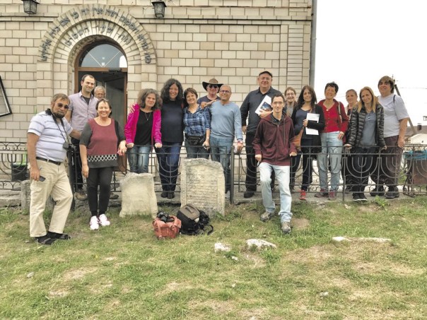 להכניס את יסודות החול אל הקודש פנימה. חברי המסע מטעם "בינה" בפתח הציון של הבעל שם טוב, מז'יבוז', אוקראינה, 2017