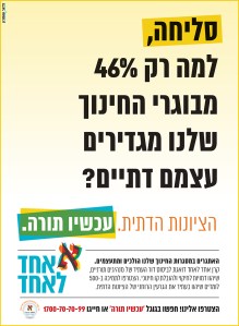 מעט לאחר מכן החל מסע פרסום אגרסיבי של הספר "היוצאים" מאת מרגוליס פאראנאק, בעיתונות וברדיו, ובו מסר ברור המאשים את ההורים בכך שילדיהם "יצאו בשאלה". בשבוע האחרון אף החל קמפיין חדש של עמותת "אחד לאחד" תחת הכותרת "סליחה, מדוע רק 46% מבוגרי החינוך שלנו מגדירים את עצמם דתיים?".