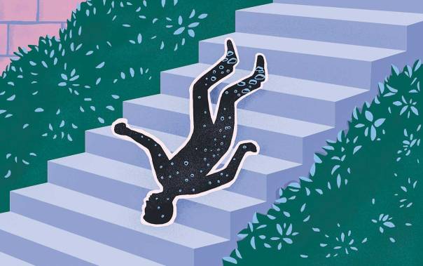 "איך הוא יכול לשכב על המדרגות?", בעלה שואל מתוך שינה, מנסה לנער מעליו את הסיפור שעוד לא ממש נוגע בו, בכוונה נחושה, שכרגע נפער בה סדק ראשון, להמשיך לישון עוד שעה ואולי שעתיים, שברוב השבתות הוא מצליח.