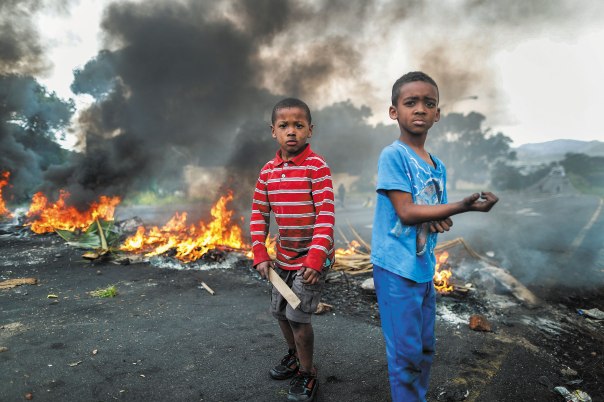 הוויה של פחד מתמיד מפני אלימות. ילדים מפגינים בקייפ טאון, דרום אפריקה 2017