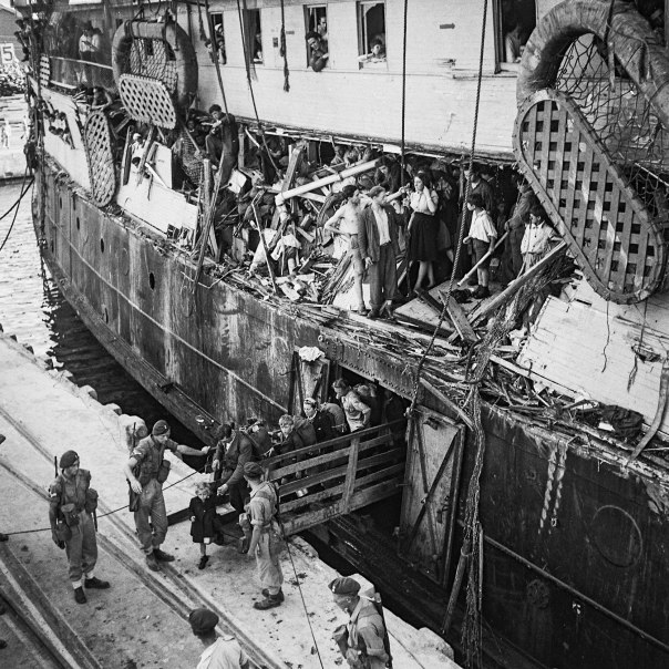לפני ההורדה מהאונייה, שנתקלה בהתנגדות אלימה, למרות עצתו של שלום, הפעילו הבריטים מוזיקת ג'אז, ובוגרי מחנות ההשמדה נזכרו שכך בדיוק נהגו הנאצים לפני הוצאה להורג. המעפילים, חלקם הגדול פצועים, משוכנים בצריפי פח במחנה פפנדורף, המגודר בגדרות תיל, ומסביב מגדלי שמירה עם זקיפים חמושים.